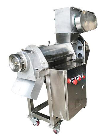 Under the effect of cam, the semi open cone bowl makes it close or separate. When the opened half bowl is gradually closed, scrape the half fruit sent by the four blossom turntable into the bowl, and the rotating cone head is gradually extended into the bowl for cone juice. Because the two center lines intersect at a specific point of view when the upper and lower turntable devices are installed, the cone head can gradually extend into the cone bowl to cone juice; after the cone juice is finished, the cone head actively drops away from the cone bowl, and the semi open cone bowl can actively separate and finish the cone juice action under the effect of cam. The juice will be collected into the transportation pipeline and the next process, and the skin and slag will be collected from the slag outlet into the slag pipeline for treatment.